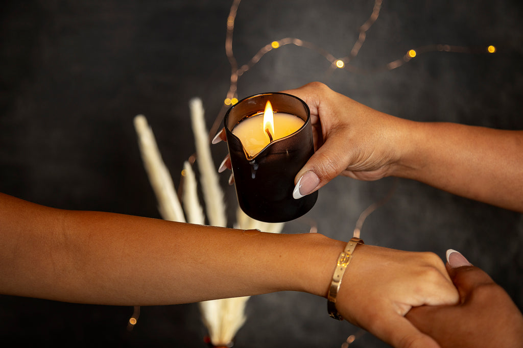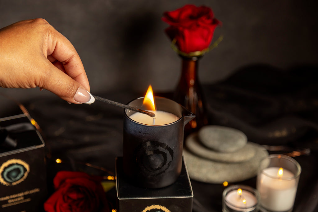 Light the candle and allow it to liquify and pool. Before pouring, extinguish the flame.